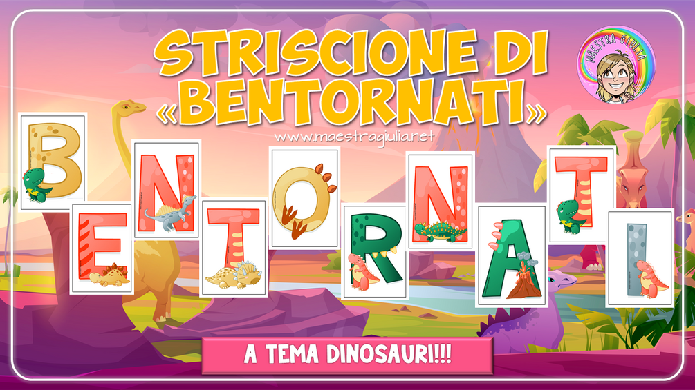 Lo striscione di benvenuto a tema dinosauri. Precedentemente era stato regalato gratuitamente come freebie, ma ancora una volta le condizioni d'uso non sono state rispettate, infatti ho ritrovato la mia risorsa caricata dove non doveva ed ora è stata messa a pagamento.